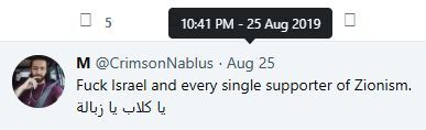 On August 25, 2019, Alqasem reportedly tweeted: “F**k Israel and every single supporter of Zionism. يا كلاب [O dogs] يا زبالة [O garbage].”