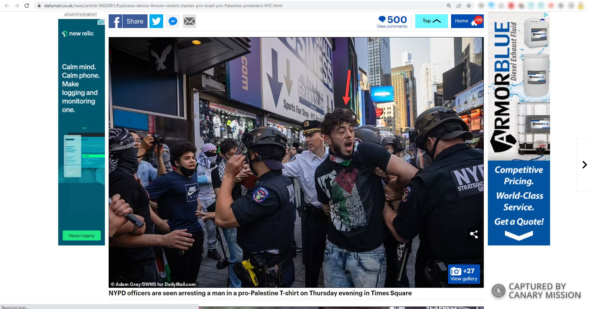 During the violent counterprotest, Hammad was arrested [00:02:30]. He could also be seen [image 13] in an image from a news article where police officers handcuffed him.