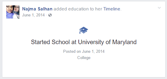 Salhan is also a member of the Facebook group for the Muslim Student Association (MSA) at UMD (MSA UMD).