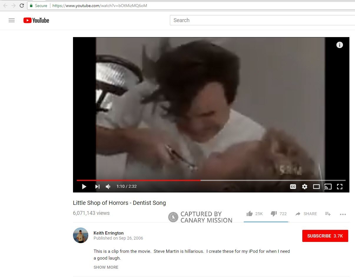 ”Barbarawi was responding to a tweet that linked to a scene from the movie “A Little Shop of Horrors” where a dentist joyfully inflicted pain on his patients.
