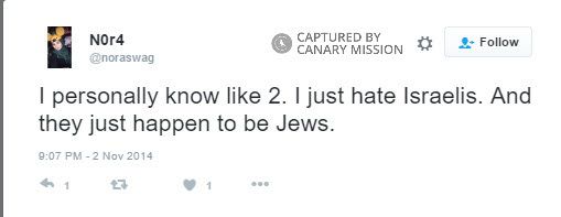 On November 2, 2014, Abushaaban tweeted: “I just hate Israelis. And they just happen to be Jews.”