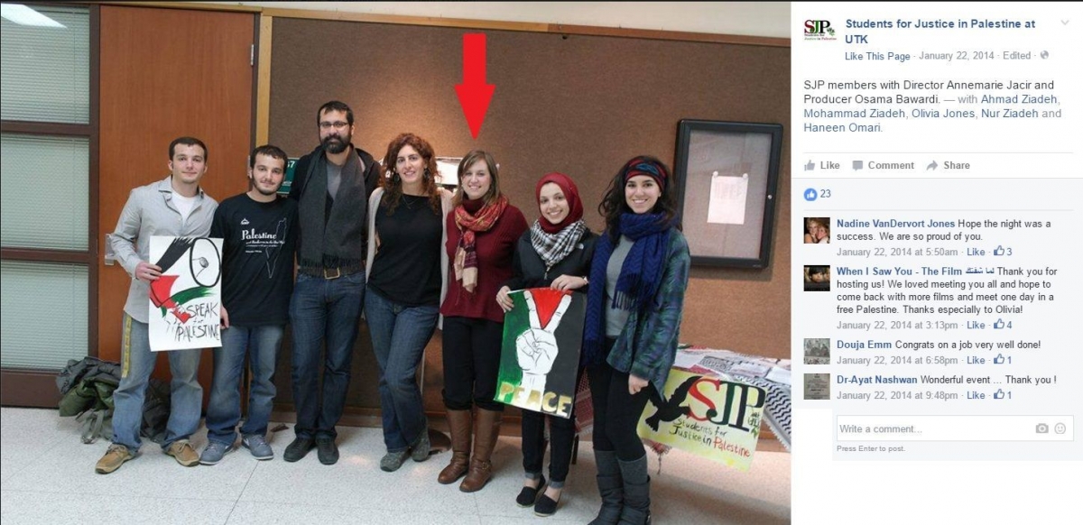 During Jones’ tenure as vice president of SJP UTK and when she was a general member, the organization's leadership and general membership was fraught with virulent anti-Semites, Hitler and Nazi sympathizers, promoters of terrorist incitement, homophobes and bigots. These individuals propagated Jew-hatred, often — but not always— under the guise of attacking "Israelis" and “Zionists.”