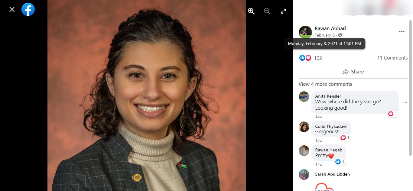 Rawan Abhari has spread hatred of Israel and opposed the International Holocaust Remembrance Alliance (IHRA) definition of anti-Semitism. Abhari also supported a Students for Justice in Palestine (SJP) activist, Ahmad Daraldik, while he was embroiled in an anti-Semitism controversy atFlorida State University (FSU), in June 2020.As of July 2021, Abhari’s LinkedIn page said she was a “Rising junior majoring in Economics & Middle Eastern Studies on a pre-law track” at FSU, slated to graduate in 2023.