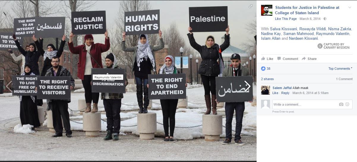 Valentin was also an activist with SJP at the College of Staten Island (CSI) in 2014-2015.