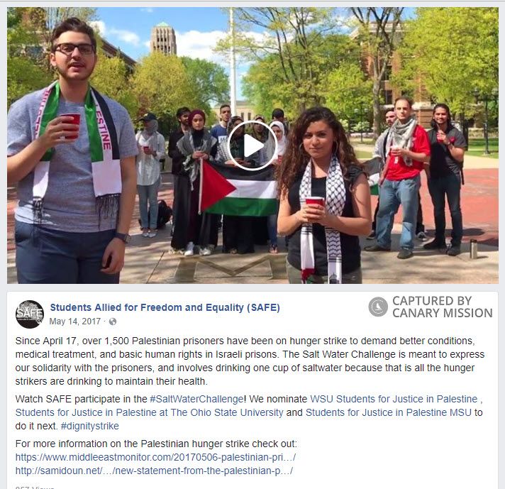 On May 14, 2017, Al-Khatib led other SAFE activists in a videotaped “#SaltWaterChallenge” to support Palestinian prisoners hunger-striking in Israeli jails.Al-Khatib, in the video, led [00:00:36] others in yelling “Down with apartheid!”.