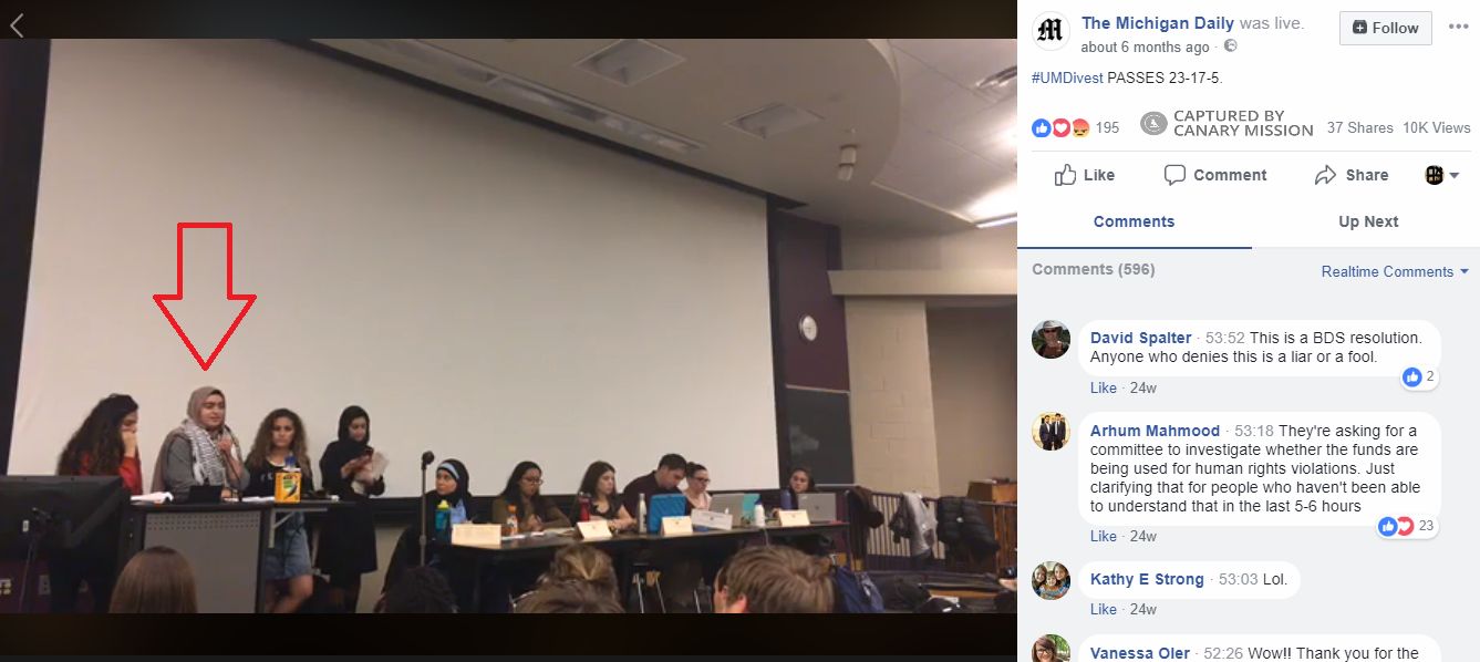 Reema Kaakarli, a SAFE activist, spent [00:53:32] nearly two minutes trying to distinguish UMDivest’s resolution from BDS and specified [00:54:28]: “We really want to distinguish ourselves from the leaders of the broader BDS movement.”