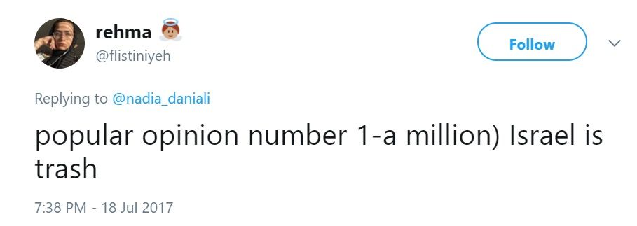 On June 3, 2017, Mohamed responded to a tweet which said “don’t forget Israel” with: “PS, f**k Israel too.”