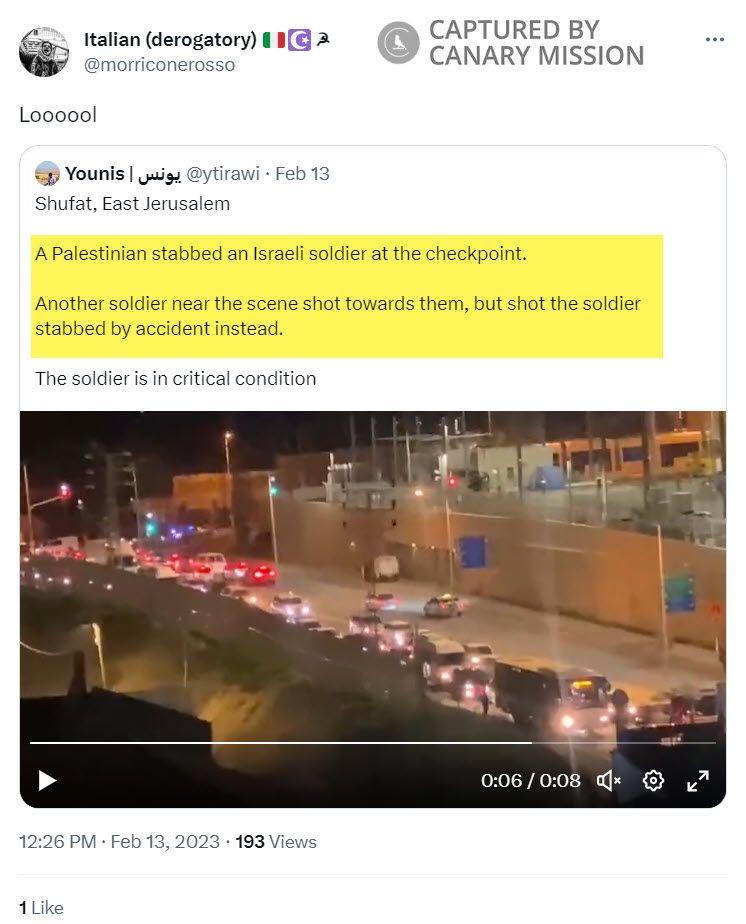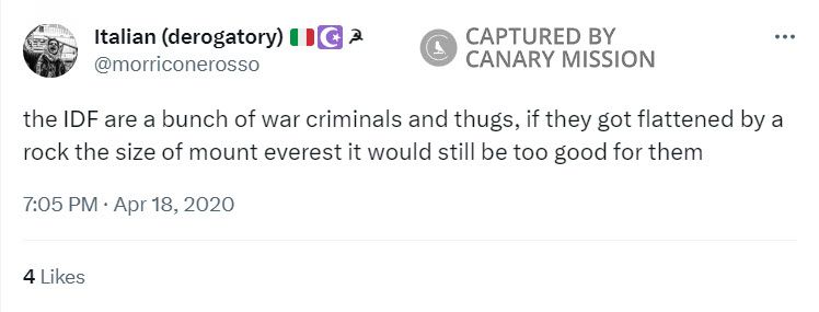 …” and the handle “@morriconerosso” on Twitter. He used the handle “@rchase.brindisi” on Facebook and “@chasebrin_dz” on Instagram.Celebrating the Death of Israelis