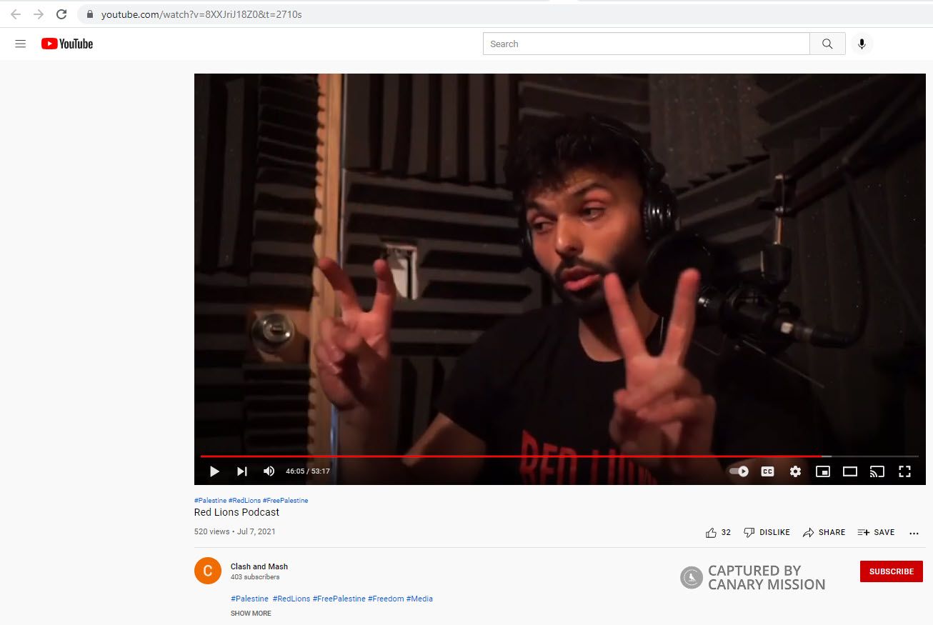 On May 19, 2021, Masoud shared on Instagram a video where he confronted a group of reporters at the previous day’s WOL rally and said [00:00:38]: “You are not invited here. Keep your Zionist s**t out there.”