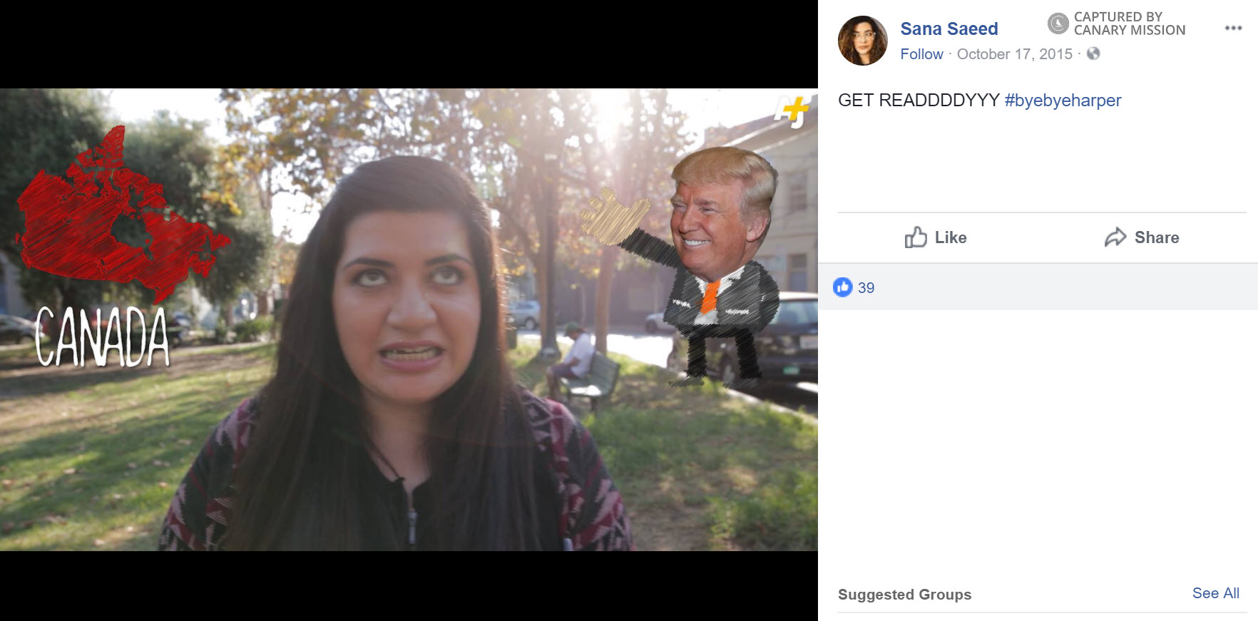 On July 201, 2014, Saeed tweeted: “Canadians: please tweet @PMHarper that we do not ‘stand staunchly with Israel’ as it massacres Palestinians. That's not our Canada.”