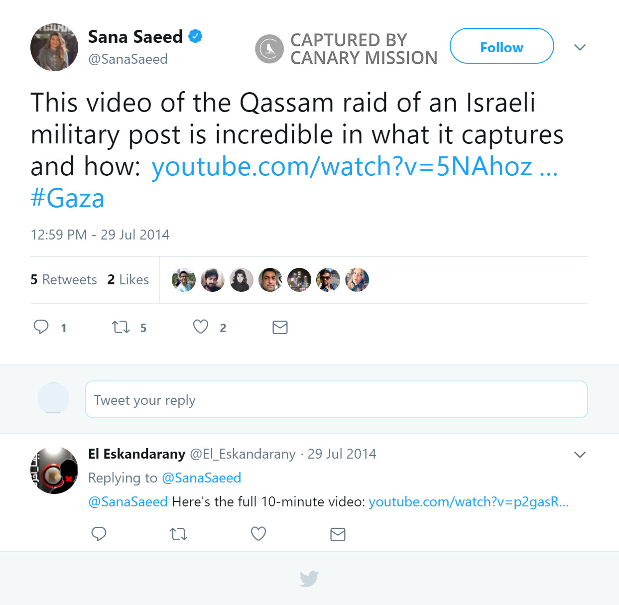 On July 29, 2014, during Israel’s OPE, Saeed tweeted: “This video of the Qassam raid of an Israeli military post is incredible in what it captures and how… #Gaza.”