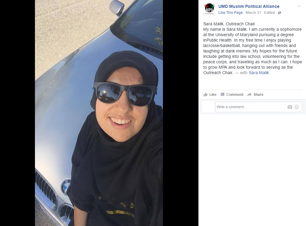 On February 26, 2017, SJP UMD released an online petition, titled “OFFICIAL STATEMENT ON BDS,” addressed to the UMD SGA and UMD President, Wallace Loh. The petition was circulated in anticipation of the anti-Israel divestment bill that was co-authored by UMD MASC and SJP UMD and announced on Facebook by Sarah Eshera — UMD MASC founder and SJP UMD activist, on April 10, 2017.