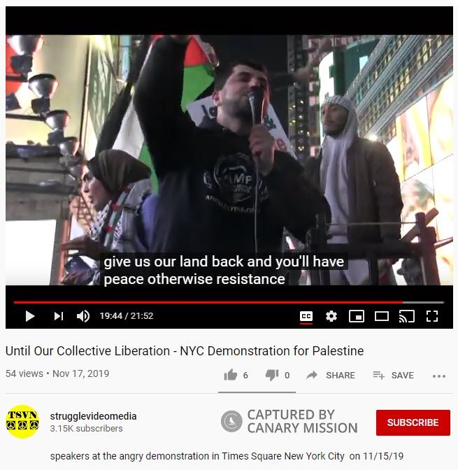 Kayed went on [00:20:18]: “Until then, resistance, resistance, resistance until all of Palestine is free… are we going to join the struggle?” The protesters answered: “yes!”