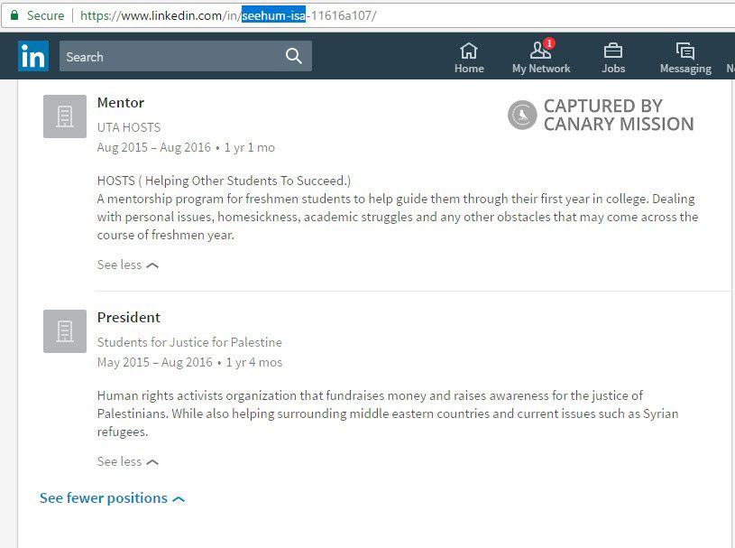 Seehum Isa was the president of Students for Justice in Palestine (SJP) at the University of Texas Arlington (UT Arlington) in April 2015 and served as president for the “Fall 2015 -Spring 2016.”Isa was also an officer of SJP UT Arlington in April 2015.