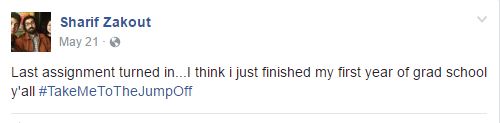On January 23, 2014, Zakout posted a picture of himself on Facebook wearing a Keffiyeh, with the sign “Zionism is Racism.”