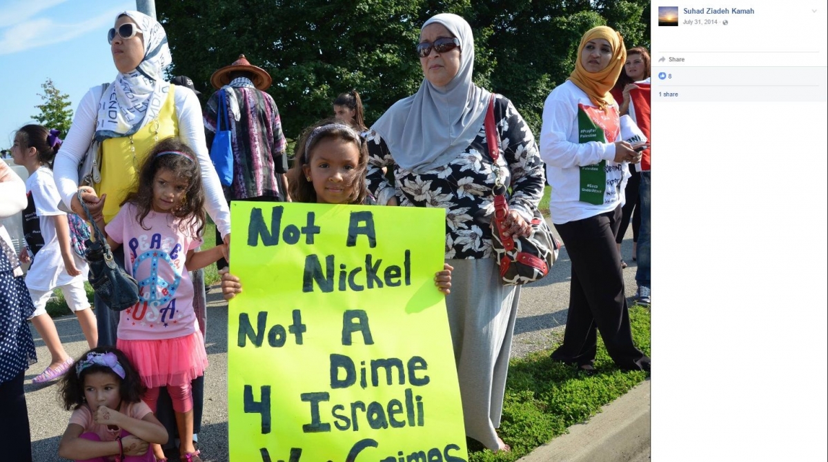 On July 10, 2014, Ziadeh-Kamah was listed as having attended another protest against OPE. One protester held a sign that inverted the true nature of the Gaza conflict and read — fraudulently: "This is Genocide." SJP UTK member Jordan Welsh held a sign that read “End all aid to the racist state of Israel.”