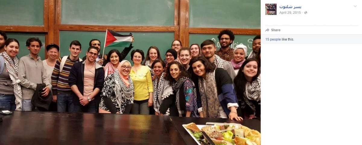 On April 28, 2015, Shaltout attended an event - which was co-hosted by JVP Columbia and CSJP - and featured Haneen Zoabi, called "Israel, Racism, and Apartheid: An Insider's View."