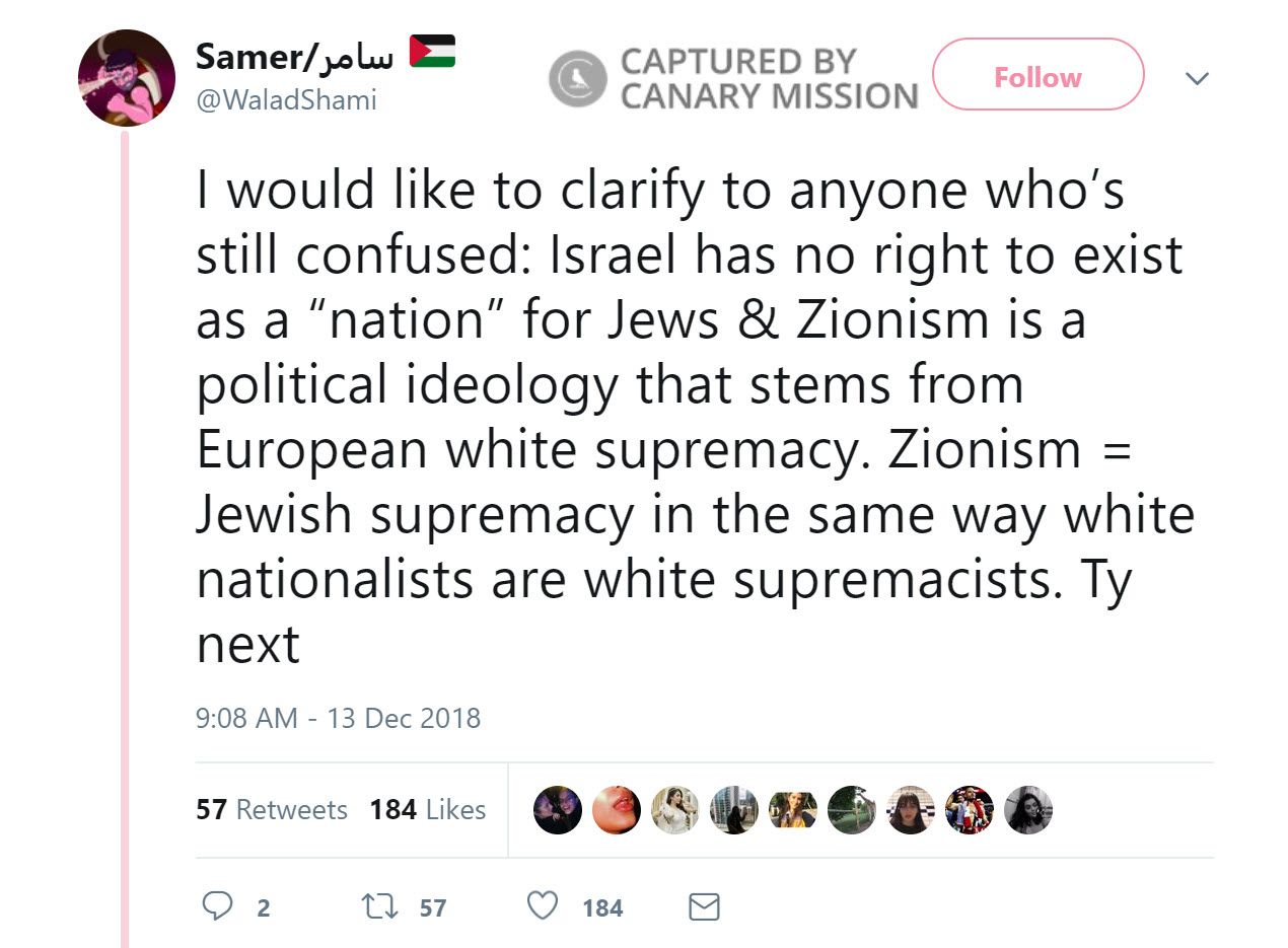 “Israelis...Exist as settler colonial pieces of s**t that deserve to be shot.”