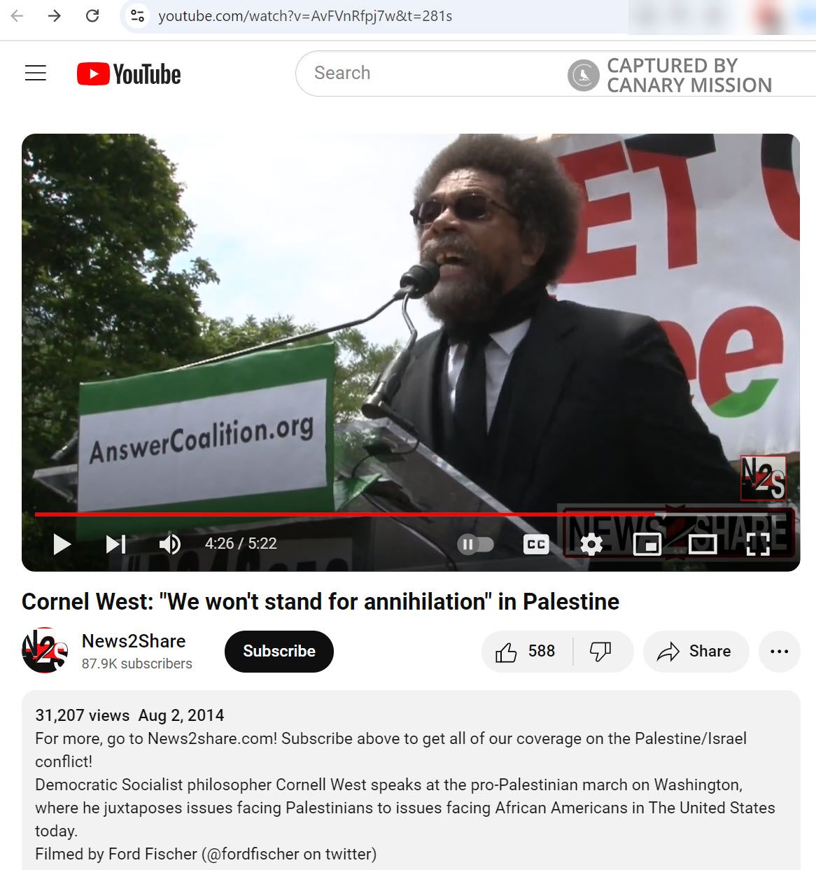 In his speech, West referred [00:04:41] to Israel’s ongoing Operation Protective Edge (OPE) against Hamas terrorists in Gaza as “Israeli state terrorism in action and it’s Jewish racism in motion.”