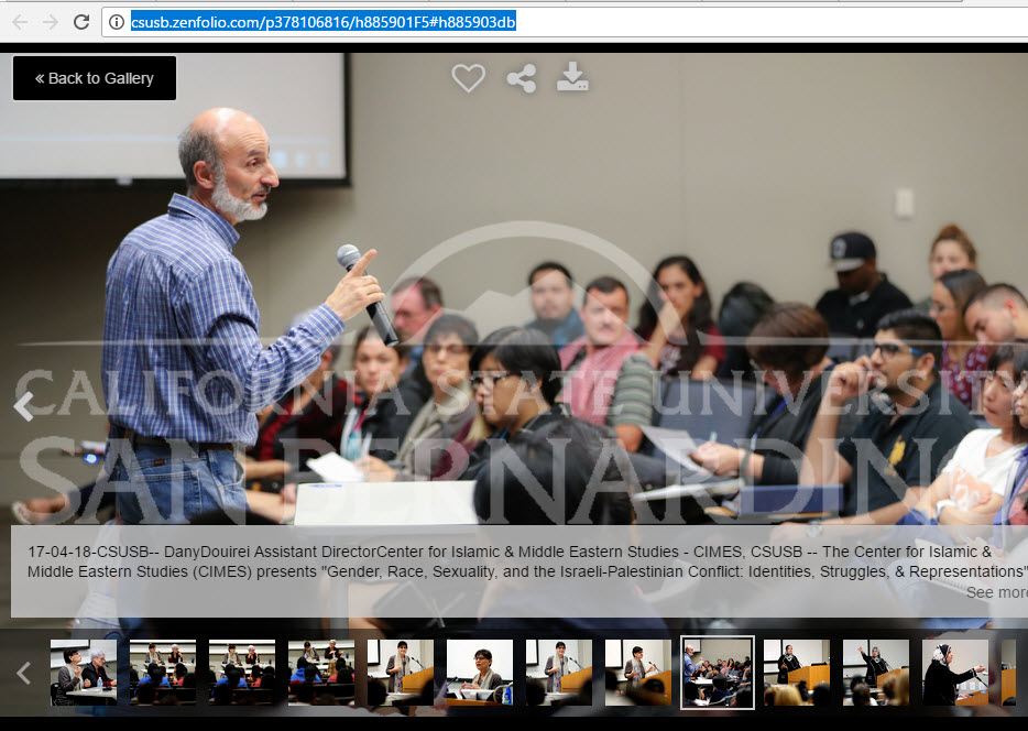 On April 18, 2017, Doueiri participated in an anti-Israel lecture titled “Gender, Race, Sexuality and the Israeli Palestinian Conflict” at CSUSB. The event featured a panel of anti-Zionist activists Rabab Abdulhadi and Simona Sharoni who spoke about “the relationships between militarism, sexism, racism, and homophobia as well as between political violence and gender-based violence.”BDS