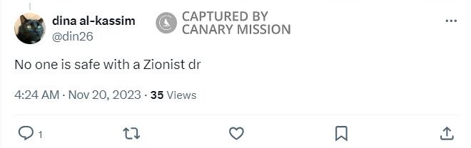 On November 20, 2023, Al-Kassim tweeted: “No one is safe with a Zionist dr.”