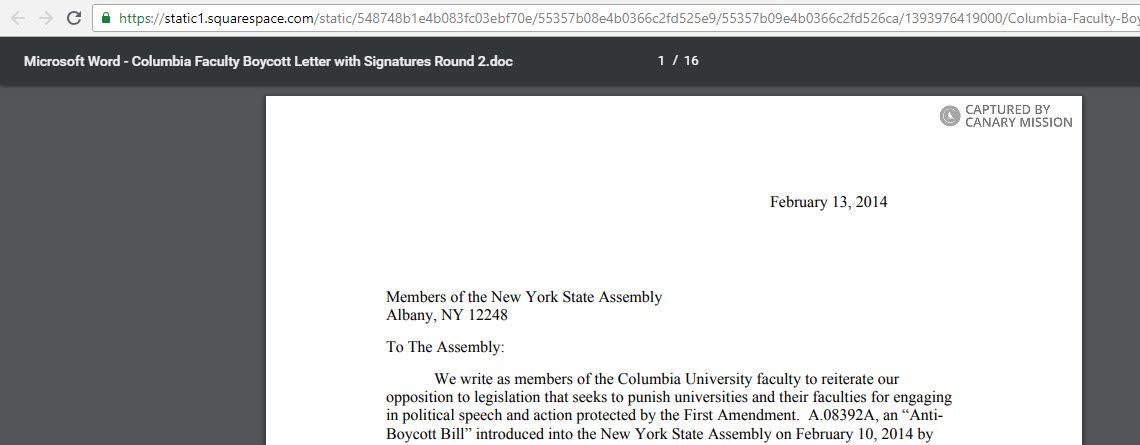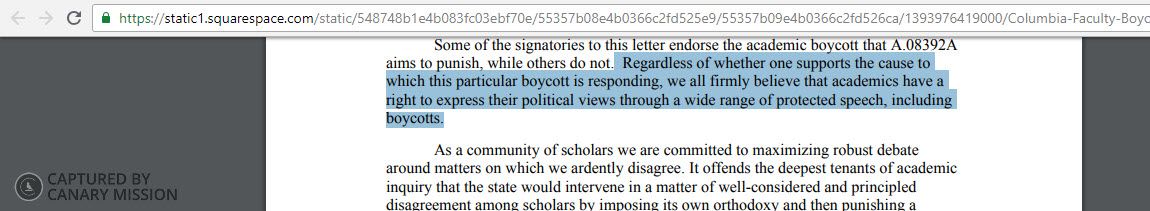 The petition went on to state that “We now stand with Columbia University Apartheid Divest, Columbia Students for Justice in Palestine as well as with Jewish Voice for Peace” and demanded “that the University divest from corporations” doing business with Israel.”
