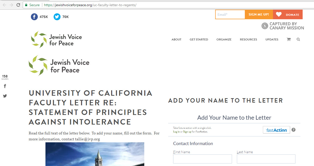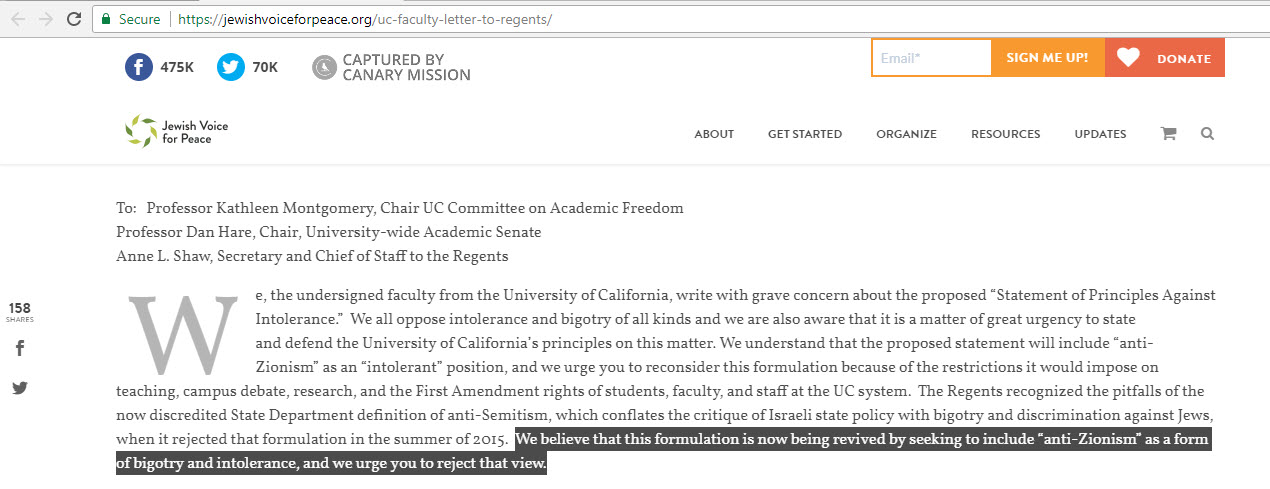 As of January 2020, Del Valle was a signatory to a letter, authored by the anti-Israel Jewish Voices for Peace (JVP) organization, opposing the inclusion of anti-Zionism as an “intolerant position” in the University of California (UC)’s proposed “Statement of Principles Against Intolerance.”Signatories of the letter argued that “The definition of ‘anti-Zionism’ as intolerance and/or bigotry is vague and overbroad” and stated that “We believe that this formulation is now being revived by seeking to include ‘anti-Zionism’ as a form of bigotry and intolerance, and we urge you to reject that view.”