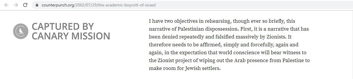 Alam went on to suggest: “... the protestations about the ‘destructiveness’ or ‘ugliness’ of an academic boycott of Israel” is “insupportable, indeed unconscionable.”