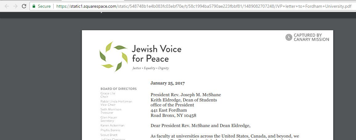 The petitioners also highlighted SJP’s BDS activity, characterizing SJP’s efforts to promote anti-Israel boycott as part of “a time-honored non-violent mode of political expression.” The petition accused Fordham’s administration of a “fundamental misunderstanding of what boycotts are, the purpose of a university, and the goals of SJP.”