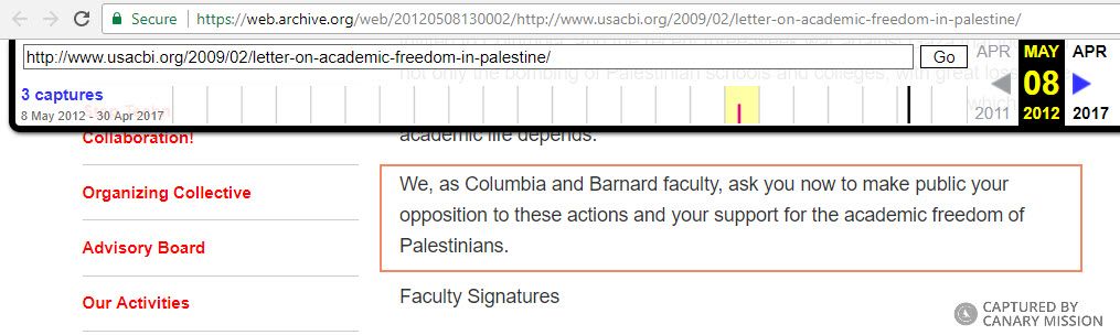 The petition went on to state that “We now stand with Columbia University Apartheid Divest, Columbia Students for Justice in Palestine as well as with Jewish Voice for Peace in calling upon the University to take a moral stance against Israel's violence in all its forms.”