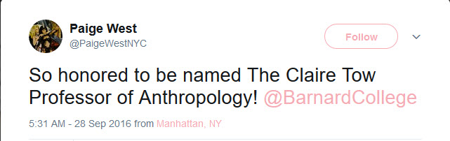Paige West is a supporter of the Boycott, Divestment, Sanctions (BDS) movement at Columbia University (Columbia) and Barnard College (Barnard).Pushing BDS on the AAA