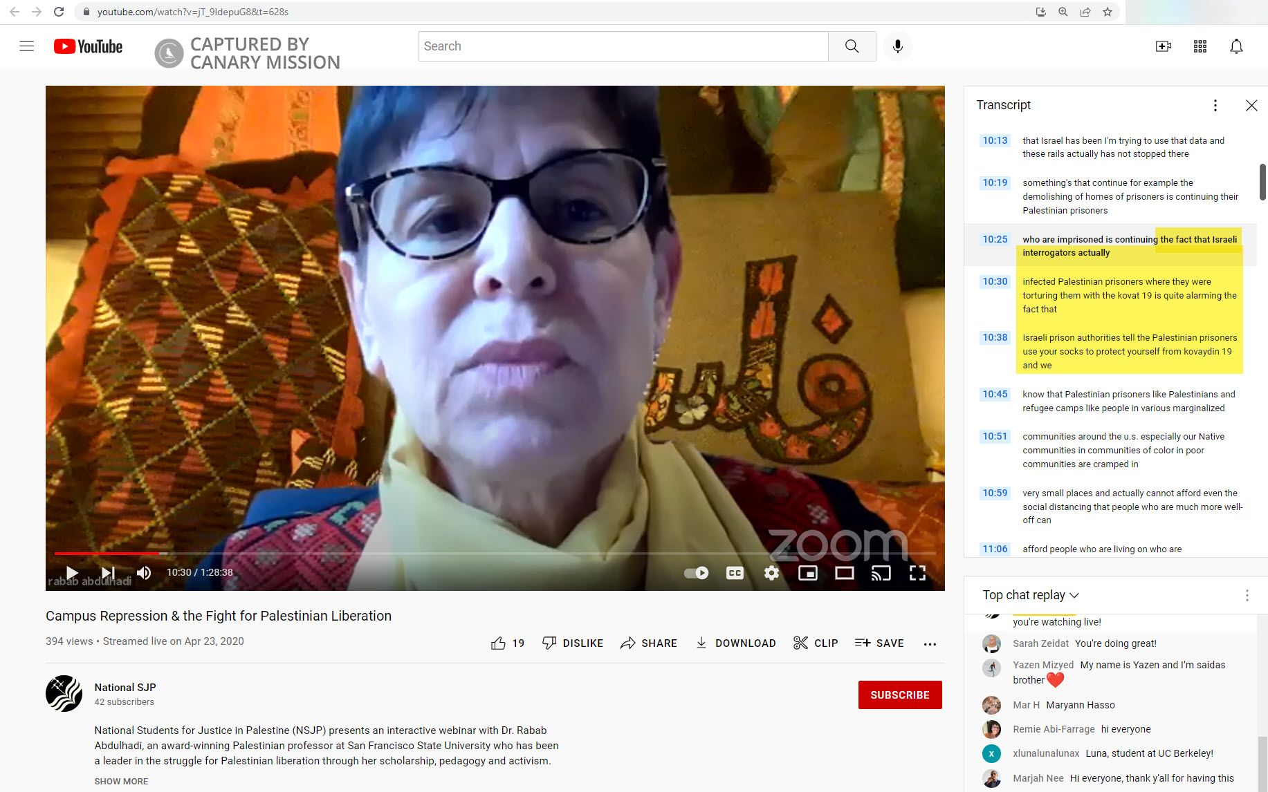 On April 23, 2020, Abdulhadi alleged [00:10:28] on YouTube that “Israeli interrogators actually infected Palestinian prisoners while they were torturing them with the COVID-19.”