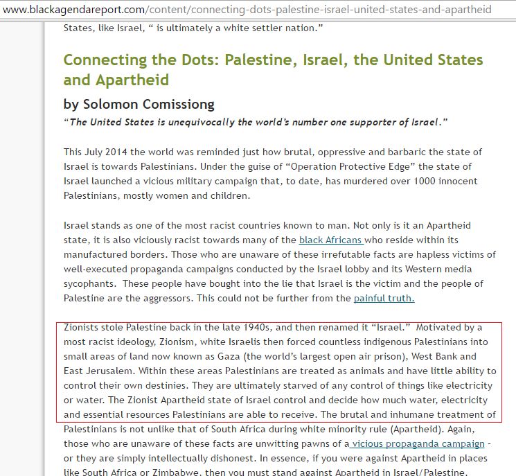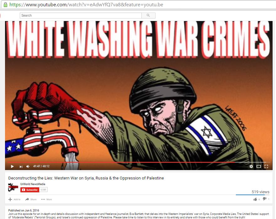 On June 6, 2016, Comissiong hosted journalist and terror supporter Eva Bartlett on his Your World News Youtube broadcast. Bartlett referred to Israel multiple times as “so-called Israel” and said that “so-called Israel decides to wage a genocide of Gaza” (3:45) every few years. She also said that Israel committed “genocide” (41:54) during the 1948 Arab-Israeli War .Bartlett later endorsed Palestinian “resistance,” stating: “I believe it’s not the only way of supporting Palestine, the BDS movement, it’s one effective tool. You know, on the note of supporting Palestine, I wish more people would talk about the legitimacy of resistance…people who support Palestine, it would be good to change the lexicon and really include the right of resistance in our lexicon and to really legitimize the fact that Palestinians are not terrorists, obviously, and have the right to resist...I do not consider Israel a legitimate state” (43:55).